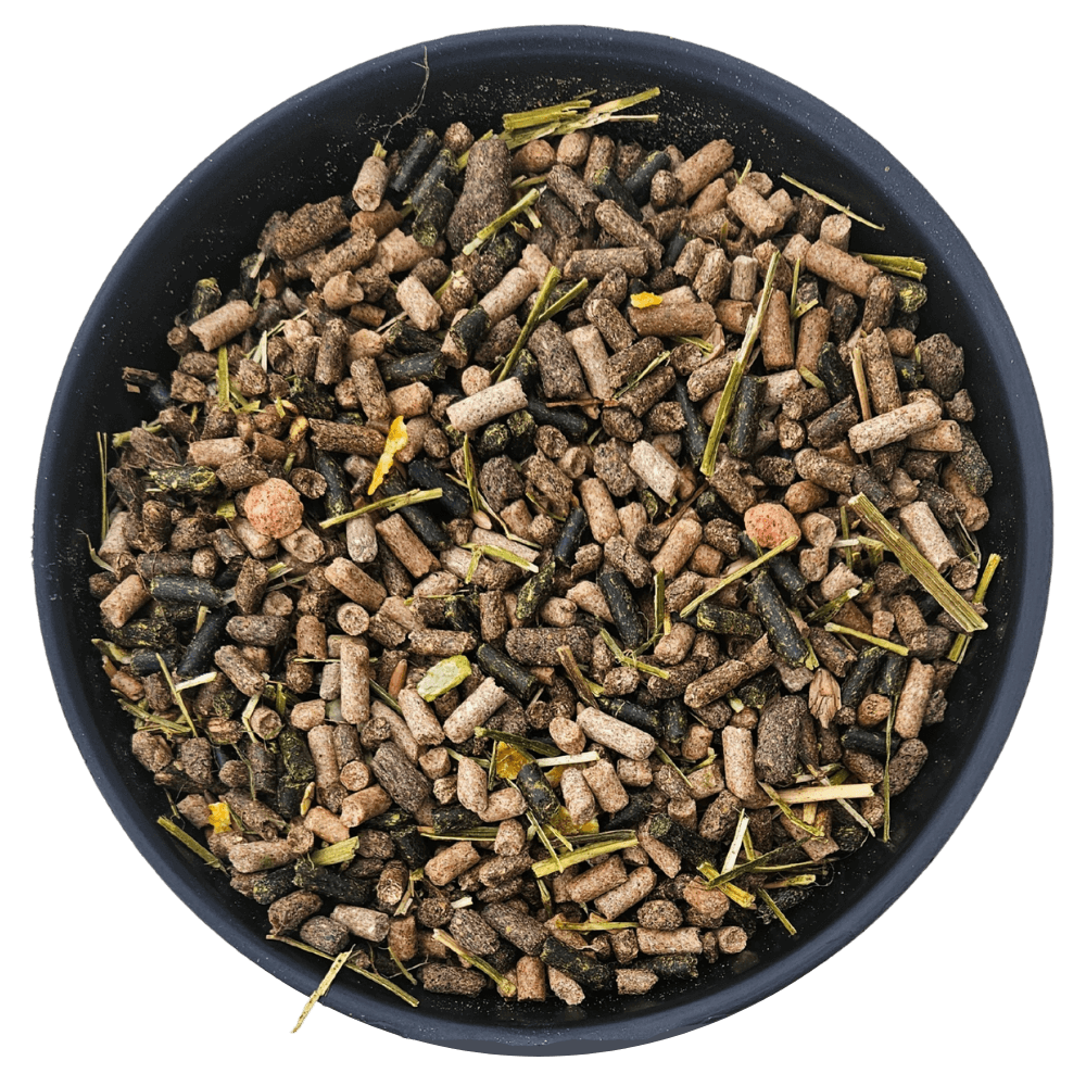 Kortmeelpellets (Zemelen), Vlaskafkorrel (Lijnzaad), Luzernekorrel, Geëxtrudeerd lijnzaad, Luzerne lange vezel, Lijnzaad geëxpandeerd, Sojaolie, Haver, Sojaschroot, Bietmelasse