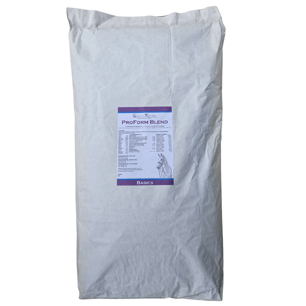 Equi-Xcel ProForm Blend is een complete, volwaardige sportmuesli met een hoog vet- en eiwitgehalte en een laag suiker- en zetmeelgehalte. Ontwikkeld voor (top)sportpaarden die behoefte hebben aan duurzame energie en optimale spierondersteuning.
