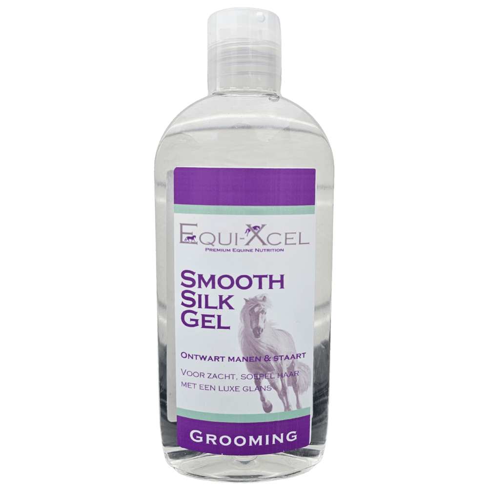 De Equi-Xcel Smooth Silk Gel ontwart moeiteloos en geeft manen, staart en vacht een langdurige, zijdeachtige glans. De rijke, verzorgende gel voedt het haar intensief en geeft een gepolijst, professioneel resultaat zonder plakkerig of vettig effect.
